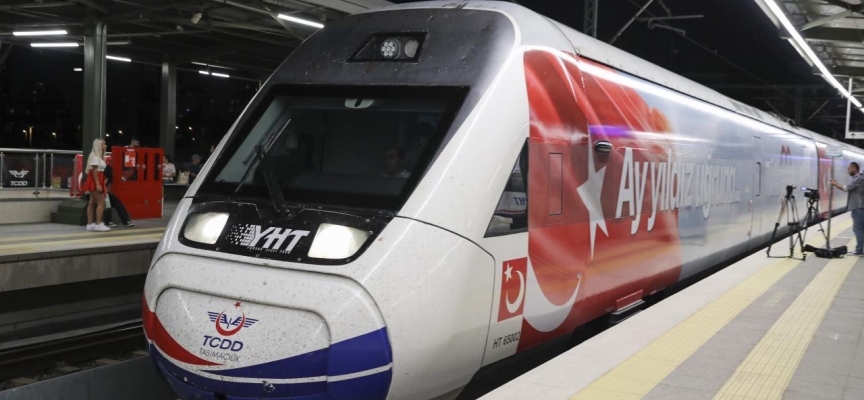 Dış giydirmesi yapılan YHT seti, 15 Temmuz Demokrasi ve Milli Birlik Günü görselleriyle Ankara-İstanbul-Konya arasında 2 ay boyunca hizmet verecek.