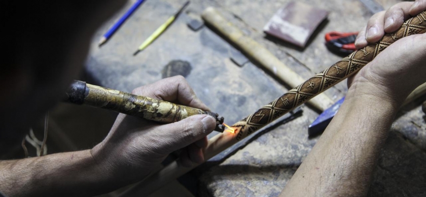 Eğe, zımpara, testere ve rende kullanarak el işçiliğiyle yaptığı bastonları Selçuklu ve Osmanlı motifleriyle süsleyen Gökbulak, yurdun dört bir yanına sipariş üzerine bu tasarım bastonları gönderiyor.