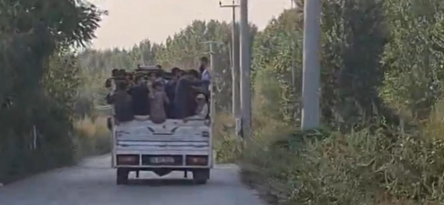 Osmangazi'de yaklaşık 30 mevsimlik tarım işçisi aynı anda kamyonetin kasasına binerek seyahat etti.