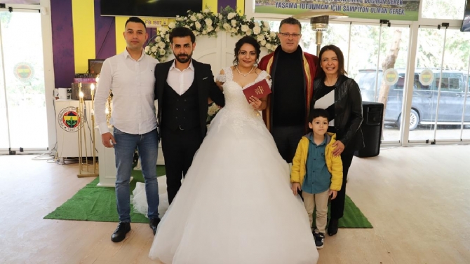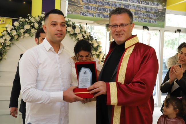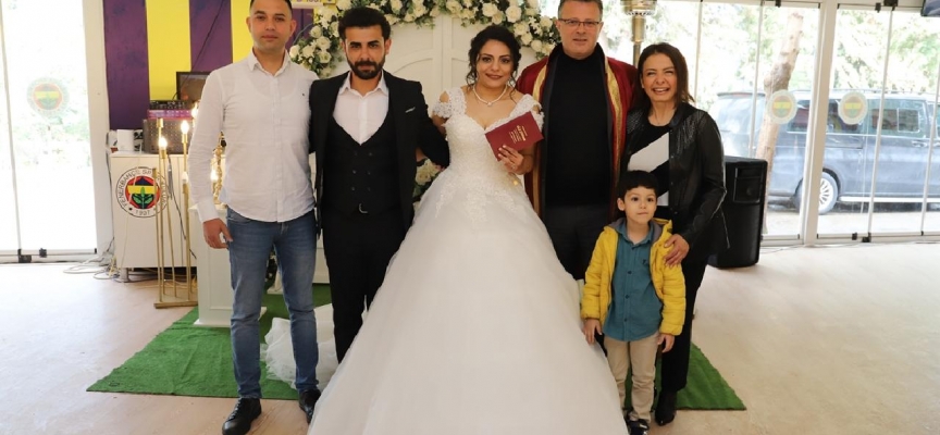 Belediye Başkanı Ahmet Öküzcüoğlu'nun kıydığı nikahta çiftin şahitliğini, damadı enkazdan çıkaran ve görev yaptığı Antalya'dan tören için gelen polis memuru Emir Bestami Demirtaş ile belediye başkanının eşi Selin Öküzcüoğlu yaptı.