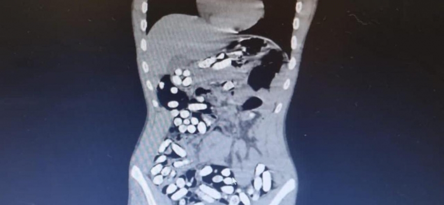 Doktor ve polis, vücutta tek seferde bu kadar yüklü miktarda uyuşturucu görmenin şaşkınlığını yaşadı.