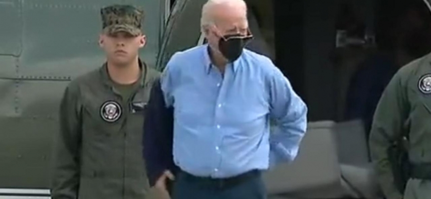 Biden, sel nedeniyle zarar gören aileleri ziyaret ettiği Kentucky'den ayrılmadan önce basın mensuplarına açıklama yapacağı alana geldi.