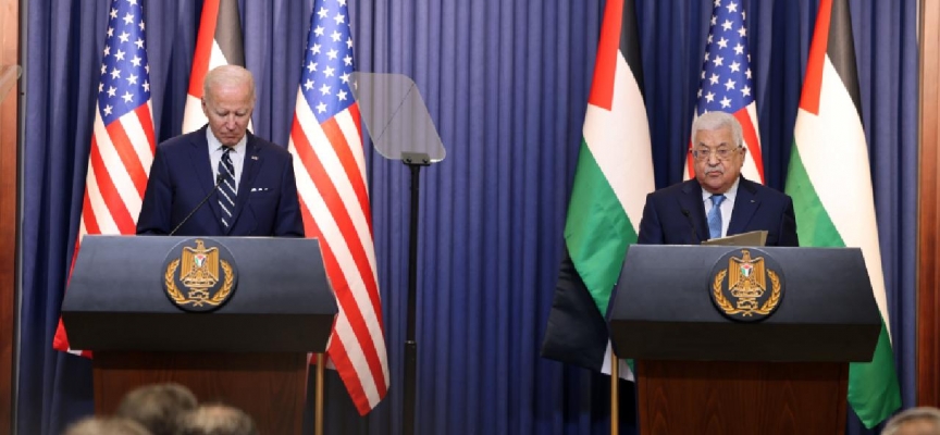 ABD Başkanı Joe Biden, İsrail'e gerçekleştirdiği bir günlük resmi ziyaretinin ardından bugün işgal altındaki Batı Şeria'nın Beytullahim kentine geçerek Filistin Devlet Başkanı Mahmud Abbas ile bir araya geldi.