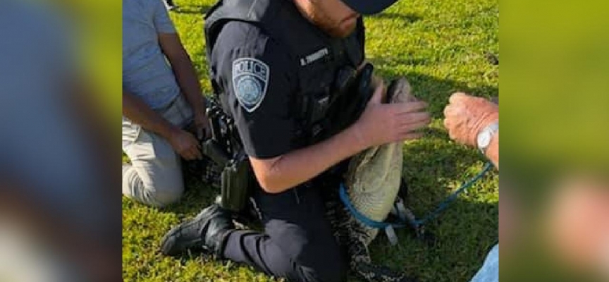 Olay yerine gelen Kingsland Polis Departmanı’ndan görevli memur Thornton, timsahı yakaladı.
