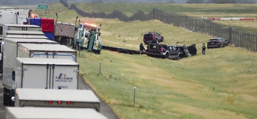 Hardin kentinin batısından geçen otoyolda 20'den fazla araç birbirine girdi.