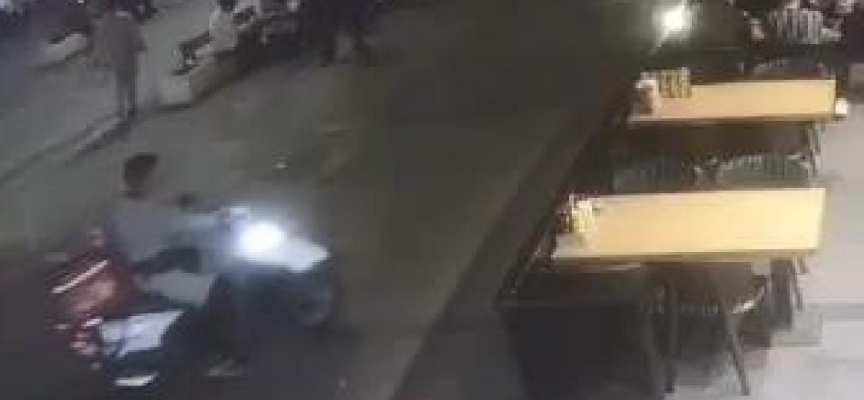 Zeytinburnu'nda bir lokantada çalışan garson motosiklete binerek tur atmak istedi. Motosikleti çalıştıran garson önce kaldırıma daha sonra da yemek yiyen müşterilere çarparak yere düştü.