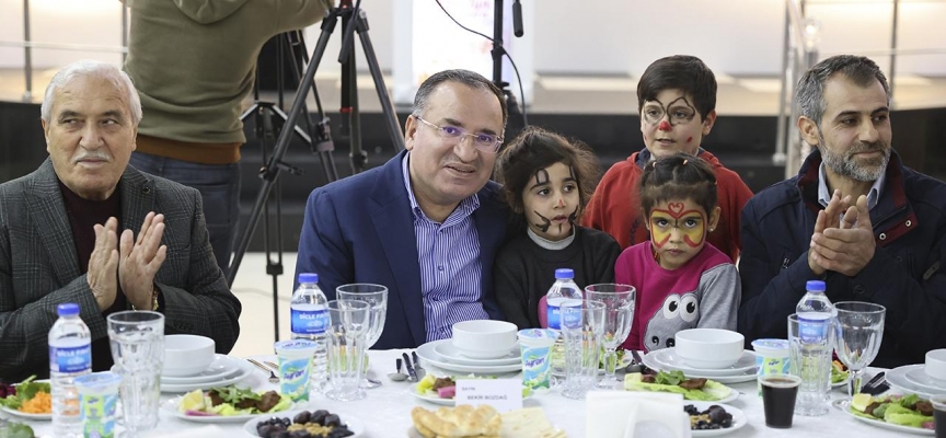 Bakan Bozdağ, bir düğün salonunda Diyarbakır Vakıflar Bölge Müdürlüğü'nce düzenlenen "Birr Lokma Bin Sofra" adlı iftar programında, depremzedeler ile vakıftan kuru gıda ve muhtaç aylığı alan vatandaşlar ve burs alan öğrencilerle bir araya geldi.