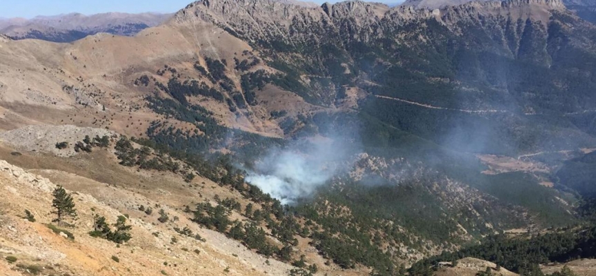 İhbar üzerine bölgeye Orman Bölge Müdürlüğüne bağlı 3 uçak, helikopter, 7 arazöz ve işçiler sevk edildi.