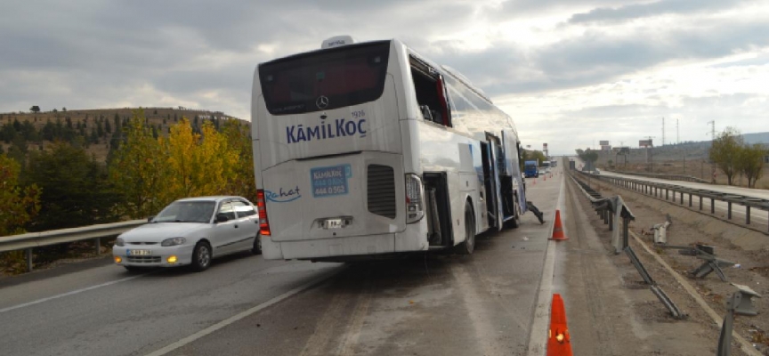 Çarpışmanın etkisiyle karşı şeride geçen yolcu otobüs bariyere vurdu.