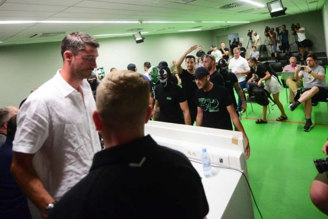 Eski teknik direktör Robert Prosinecki'nin gönderilmesi nedeniyle kulüp başkanı Adam Delius ve Riera'ya tepki gösteren bir grup taraftar, basın toplantısının hemen başında salona girerek törenin başlamasını engelledi.