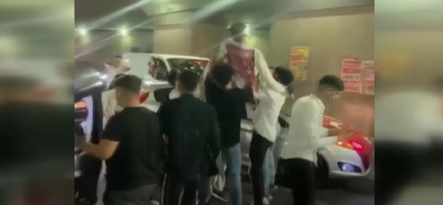 Esenyut’ta bir grup genç, askere gidecek arkadaşları için konvoy oluşturdu. Gençler bir alt geçidi trafiğe kapatarak eğlendi.