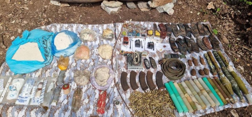 Çalışmada, terör örgütü PKK tarafından kullanıldığı tesit edilen sığınakta patlayıcı ve çeşitli yaşam malzemeleri bulundu.