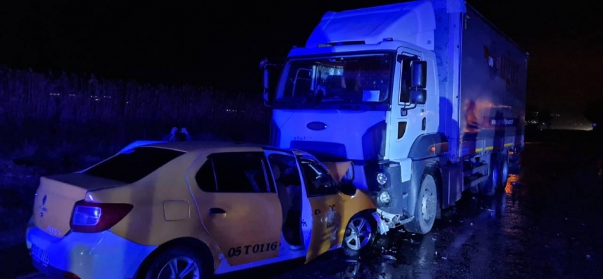 Kaza, dün akşam Amasya'nın Gözlek mevkinde meydana geldi. Kent merkezine seyreden Serdar Ateş iradesindeki taksi, yol ayrımında karşı yönden gelen İ.U. (54) yönetimindeki TIR ile kafa kafaya çarpıştı.