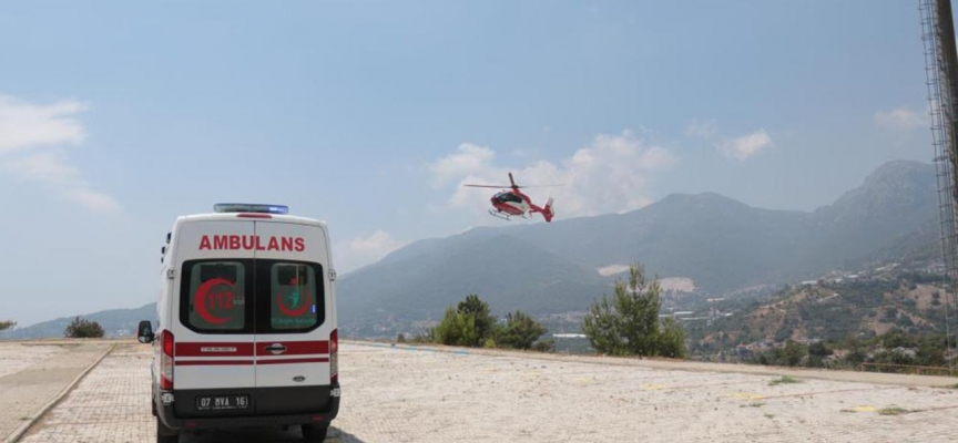 Sağlık Bakanlığından istenen ambulans helikopter, ilçede Bahçeşehir Okulları Stadı'na gitti.