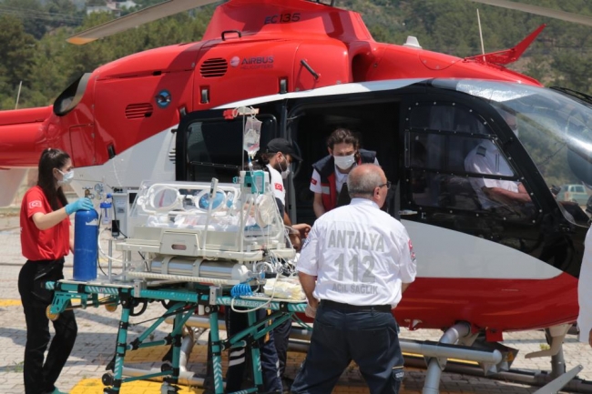 Alanya Eğitim ve Araştırma Hastanesi'nde 34 hafta 5 günlük olarak dünyaya gelen bebeğin, ileri tetkik ve yoğun bakım gerektiği için Antalya'ya sevkine karar verildi.