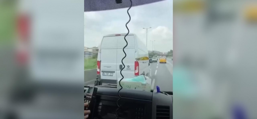 Sağmalcılar Viyadüğü'nde siren çalarak seyreden ambulans, önünde ilerleyen ve yol vermeyen kapalı kasa minibüsten kornaya basarak yol istedi.