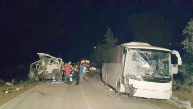 Otobüs ile kamyonet yüz yüze çarpıştı