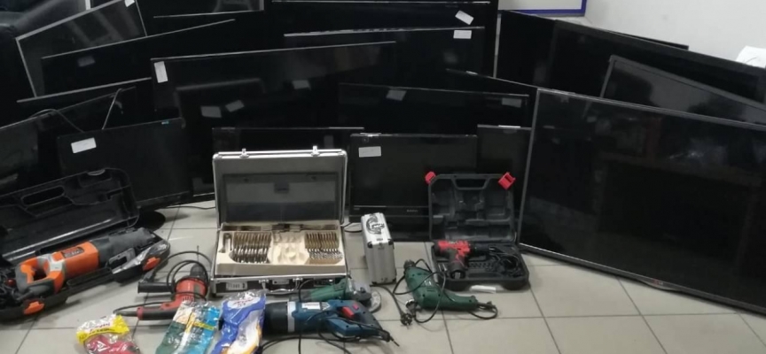 Bu kişilere ait ev, iş yeri ve araçlarda yapılan aramalarda, 22 televizyon, 5 silah, bu silahlara ait 4 şarjör ve toplamda 129 fişek, 3 pompalı tüfek ile 21 av fişeği, 4 cep telefonu, 14 saat, 2 bin 923 paket sigara, hırsızlık amacı ile kullanılan çok sayıda el aleti, 3 el feneri, 2 dürbün ve olaylarda kullanılmak üzere 4 çift eldiven ele geçirildi.