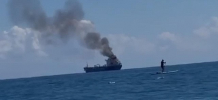 Bölgede demirli bulunan yakıt yüklü Türk bayraklı yakıt gemisinin baca bölümünden henüz belirlenemeyen bir nedenle alevler yükselmeye başladı.