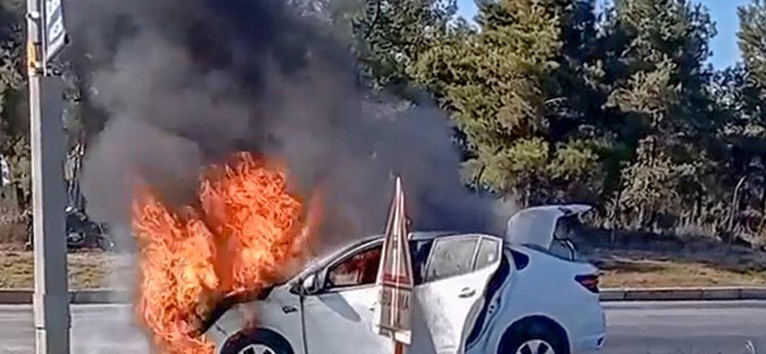 H.Ç. idaresindeki otomobil, Kardeş Kentler Caddesi'nde seyir halindeyken alev aldı.