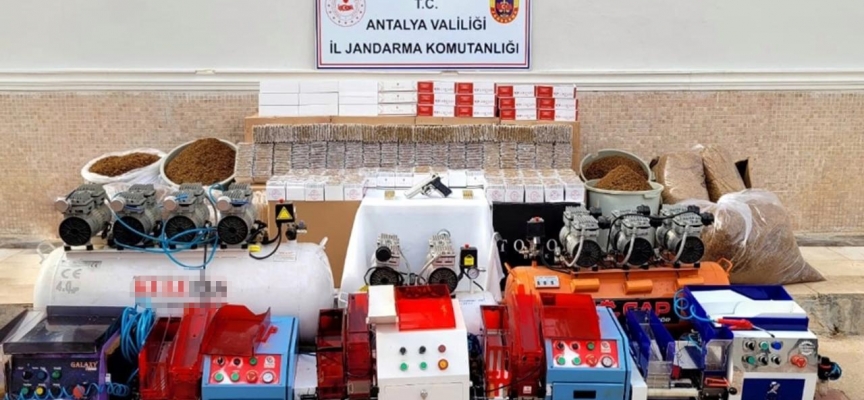 İki ilçede bazı şüphelilerin ev ve eklenti yerlerine eş zamanlı düzenlenen operasyonda, 230 kilogram kıyılmış kaçak tütün, 129 bin 500 doldurulmuş makaron, 141 bin 400 boş makaron, 12 bin paketleme naylonu, 3 kompresör, 5 dolum makinesi, tabanca ve 115 mermi ele geçirildi.