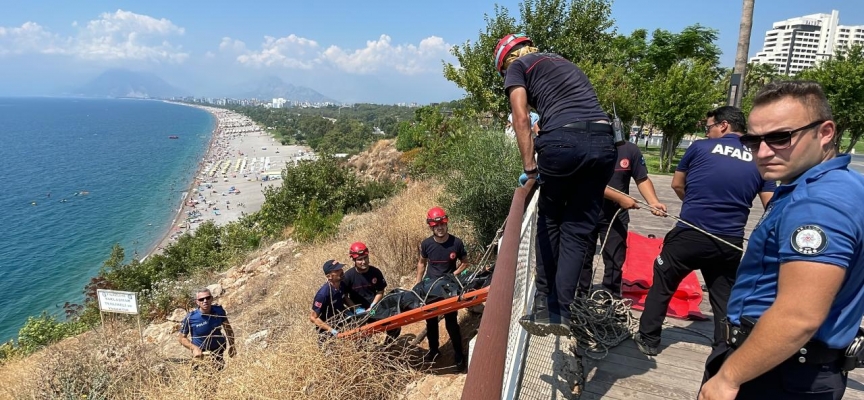 Dron ile havadan ve karadan arama çalışması yapan emniyet, AFAD ve itfaiye ekipleri, falezlerde erkek cesedi buldu.