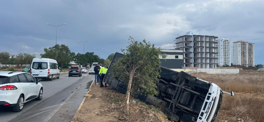 Antalya'da midibüs, Kundu-Havalimanı yolu Kardeş Kentler Caddesi'nde kontrolden çıkarak devrildi.