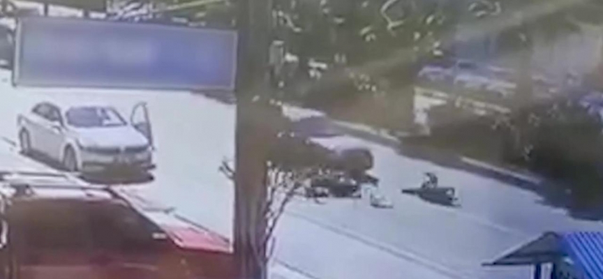 Kaza anı ise bir iş yerinin güvenlik kamerası tarafından saniye saniye görüntülendi.