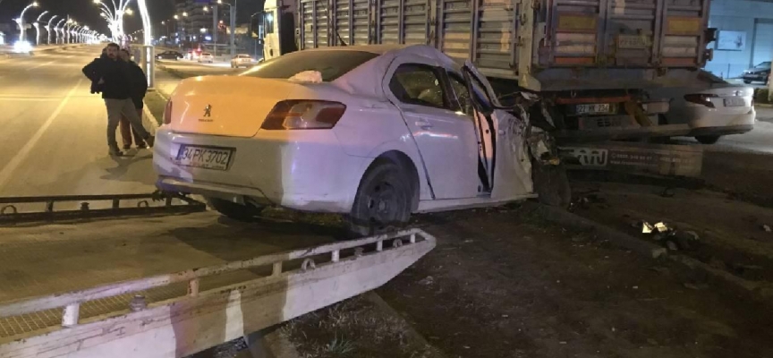 Çarpmanın etkisiyle park halindeki tırın arkasında otomobilde sıkışan Gamze Ç. sağlık ve itfaiye ekiplerinin uğraşları sonucu acılar içinde kurtarıldı.