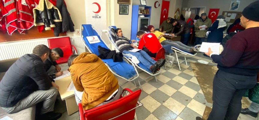 PTT Meydanı'ndaki Kan Bağışı Merkezi'ne gelenler soğuk havaya rağmen yoğunluk oluşturdu.