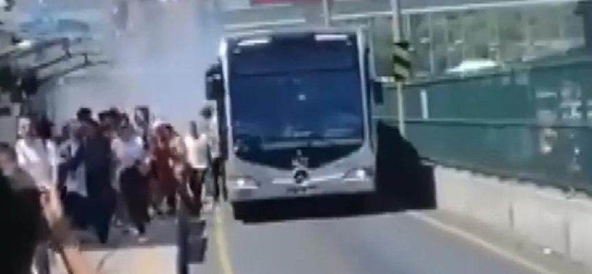 Vatandaşın cep telefonu kamerasına yansıyan görüntüde, yolcuların duman çıkan metrobüsten hızla uzaklaşması yer aldı.