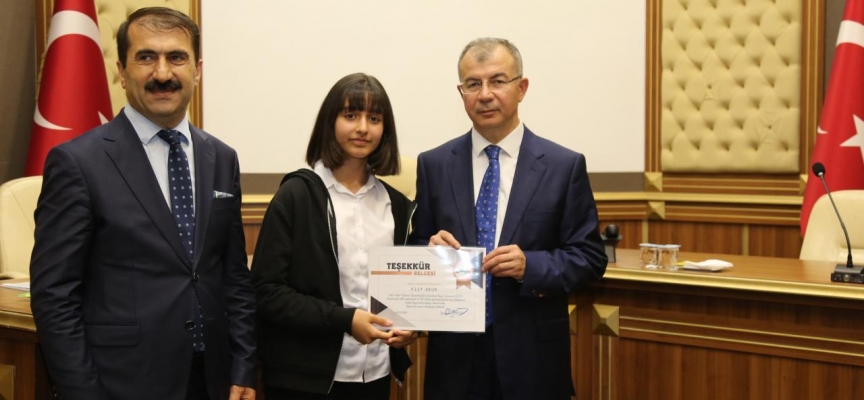 Vali Yılmaz Doruk, sınavda yüzde 1'lik başarı diliminde yer alan 12 öğrenci, aileleri ve okul müdürlerini kabul edildi. Öğrencileri ödüllendiren Doruk, okul müdürlerine de başarı belgesi verdi.