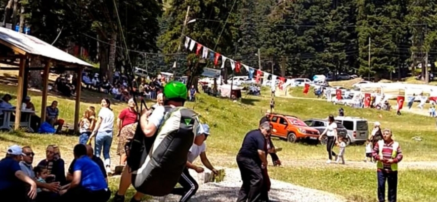 Türk Hava Kurumu Artvin Şubesinin davetiyle katıldıkları festivalde, Sahara Dağı'nın 2 bin rakımlı noktasından 450 metrelik uçuşla festival alanına iniş yapan pilotların gösterisi ilgiyle izlendi.