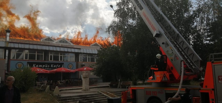 Erzurum'da bugün öğle saatlerinde Atatürk Üniversitesi kampüsü içerisinde bulunan merkez yemekhanenin çatısında yangın çıktı.