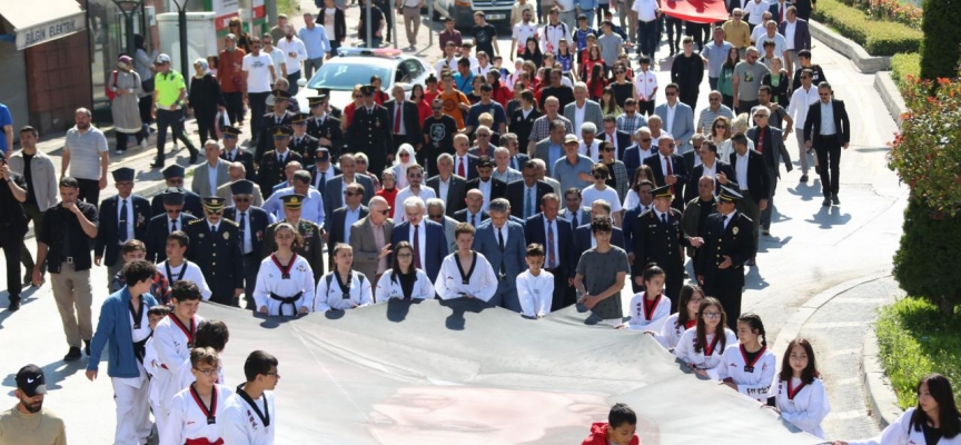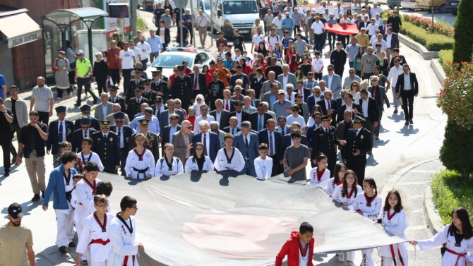 Törene katılan protokol üyeleri ve vatandaşlar İzzet Baysal Caddesi'nden Atatürk Anıtı'nın bulunduğu Anıtpark'a kadar yürüdü.