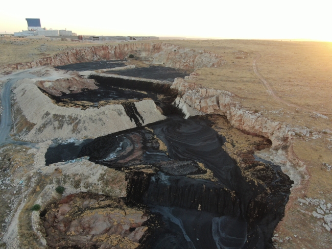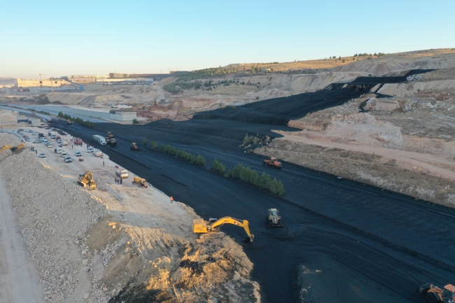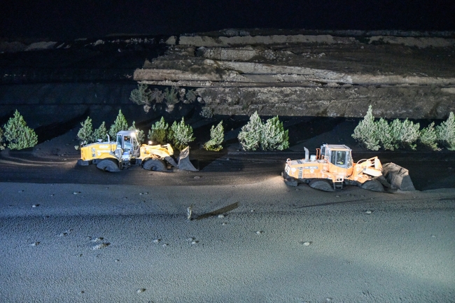 Tali yollardan atık su birikintisinin olduğu alana ulaşan onlarca iş makinesi, otoyolun çevresindeki dağlık yerlerden delikler açarak suyu tahliye ediyor.