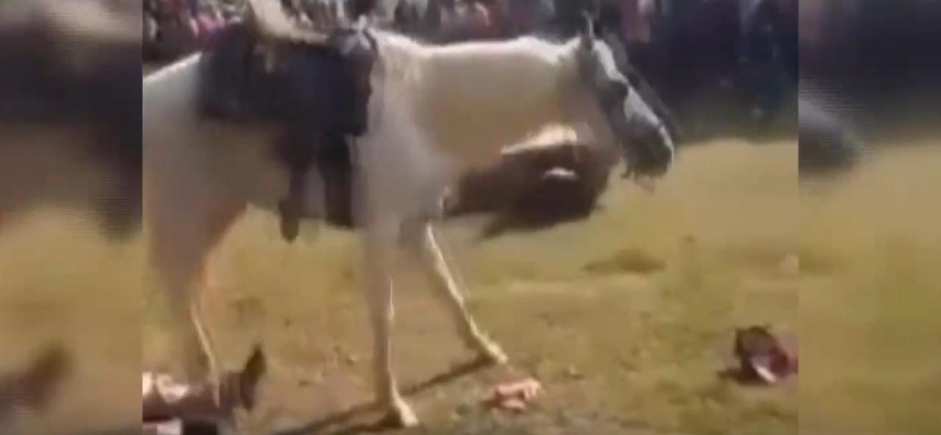 Çarpışmanın etkisi ile atların ikisi devrilerken, atın binicisi ise yere düşerek hareketsiz kaldı.