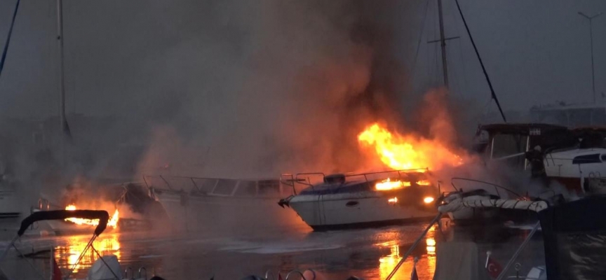 Yanındaki diğer teknelere sıçrayıp kısa sürede büyüyen yangına, sevk edilen itfaiye ekipleri müdahale etti.