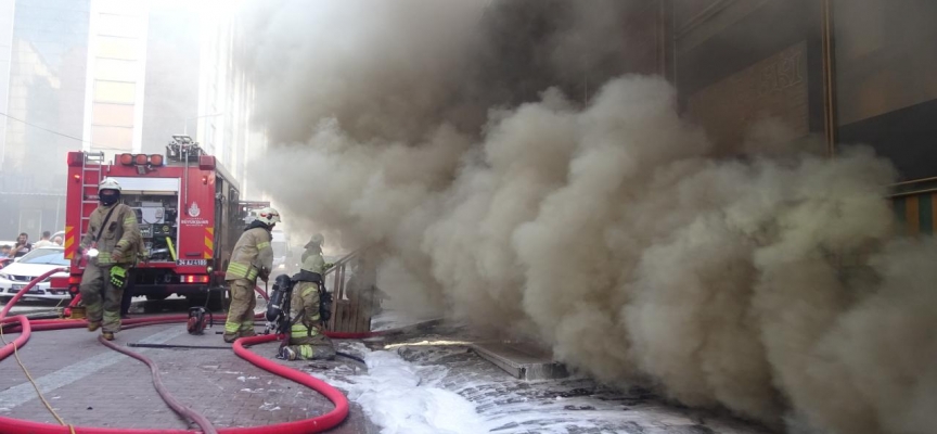 Sıhhiye Sokak’taki 5 katlı binanın bodrum katındaki yangın, atık süngerlerin işlendiği atölyede makinelerden birisinden çıkarak süngerlerin tutuşmasıyla kısa sürede büyüdü.
