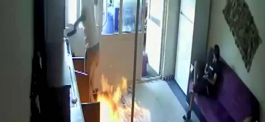 Firuzköy Mahallesi'ndeki bir halı yıkama atölyesinde, tüp hortumundaki sızıntı nedeniyle patlama meydana geldi. Patlama güvenlik kamerasına yansıdı.
