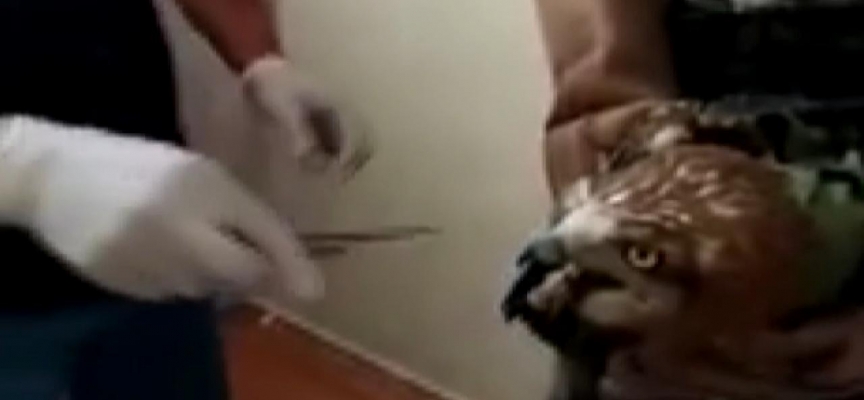 Boğulma tehlikesi geçiren kartalın boğazına takılan yılan çıkarıldı. Nefes alması sağlanan kartal, tedavi altına alındı.