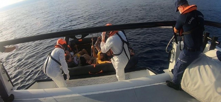 Ekipler, Yunanistan unsurlarınca Türk kara sularına itilen can salı ve lastik bottaki 46 düzensiz göçmeni kurtardı.
