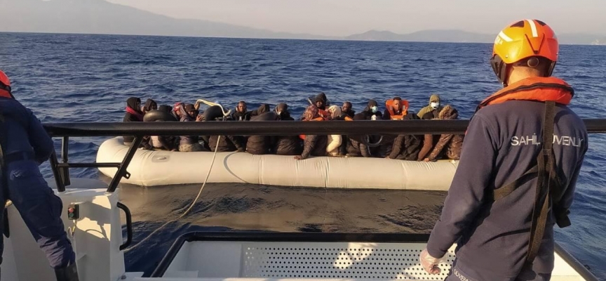 Kuşadası ilçesi açıklarında lastik bot içerisinde bir grup düzensiz göçmen olduğu bilgisinin alınması üzerine görevlendirilen Sahil Güvenlik Botu (TCSG-912) tarafından Yunanistan unsurlarınca Türk karasularına geri itilen lastik bot içerisindeki 34 düzensiz göçmen kurtarıldı.