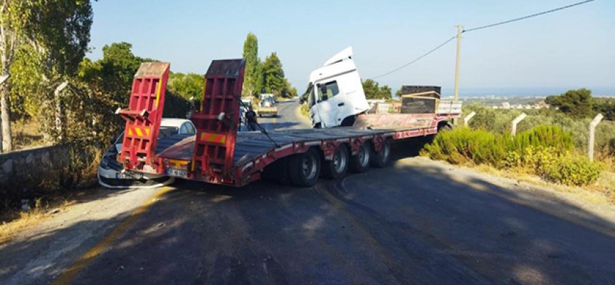 Kazada kimse yaralanmazken, karayolu kaza nedeniyle bir süre trafiğe kapandı.