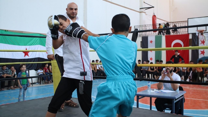 Azez Spor Federasyonunun organize ettiği ilk boks turnuvasına Binneş, Sermada, Dana, Afrin ve Azez ilçelerindeki kulüpler katıldı.