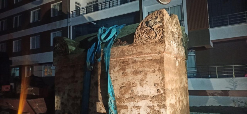 Tepecik Mahallesi'nde bir inşaatın bahçe duvarının temeli için yapılan kazıda, iş makinesi sert bir cisme çarptı. İş makinesi operatörü, makineyle kütlenin etrafını kazınca lahit ortaya çıktı.