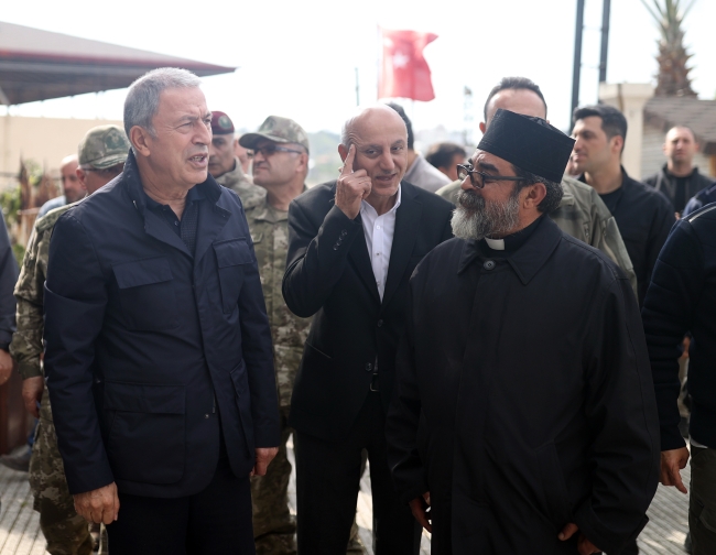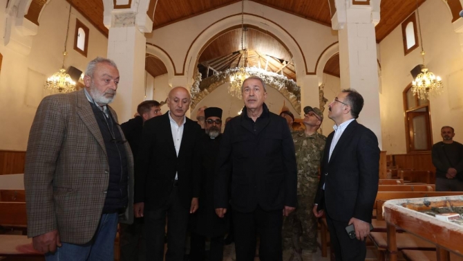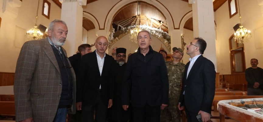 Bakan Akar daha sonra, Genelkurmay Başkanı Orgeneral Güler ve İçişleri Bakan Yardımcısı İsmail Çataklı ile ilçe merkezi ve depremde zarar gören Rum Ortodoks Mar İlyas Kilisesi'nde incelemelerde bulundu.