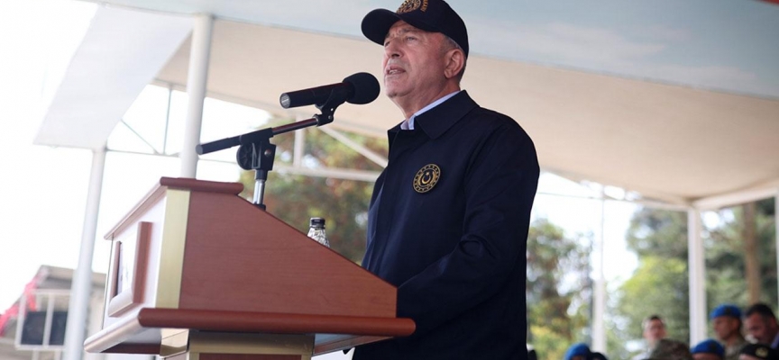 Kahraman Türk Silahlı Kuvvetleri'nin terörle mücadelenin yanı sıra aynı azim ve kararlılıkla Türkiye'nin semalardaki ve denizlerdeki hak ve menfaatlerini de koruduğunu vurgulayan Bakan Akar, "Kıbrıslı kardeşlerimizin haklı davalarında tüm imkânlarıyla yanlarında yer almakta, bunlara ilaveten başta Azerbaycan ve Libya olmak üzere dost, kardeş ve müttefiklerimizin haklı davasına destek olmakta, aynı zamanda BM, NATO, AGİT, AB bünyesinde ve ikili anlaşmalar çerçevesinde dünyanın birçok coğrafyasında görev yapmaktadır" değerlendirmesinde bulundu.