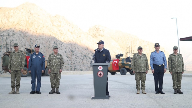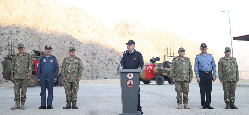 Zorlu hava ve arazi şartlarında büyük kahramanlık ve fedakarlık gerektiren operasyonları başarıyla yerine getirmeye devam eden birlikleri tebrik ederek sözlerine başlayan Akar, “En son terörist etkisiz hale getirilinceye, asil milletimiz, 85 milyon vatandaşımız terör belasından kurtuluncaya ve sınırlarımız tam olarak güven altına alınıncaya kadar bu mücadeleyi sürdüreceğiz” diye konuştu.