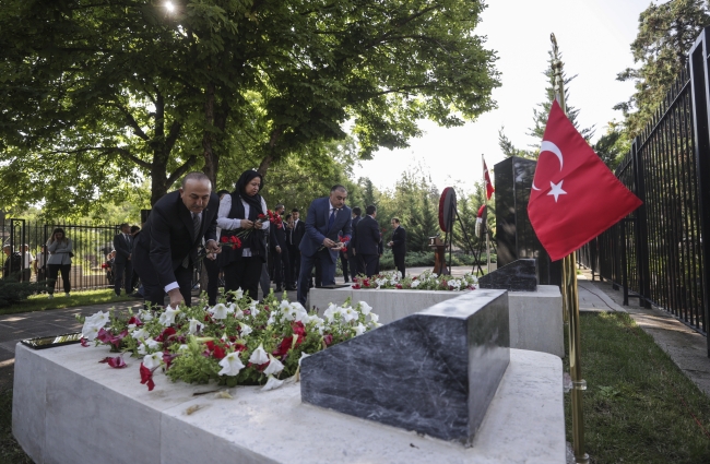 Törenin sonunda Çavuşoğlu, bakan yardımcılarıyla şehitlerin kabirlerine karanfil bıraktı.